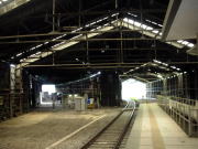 | 以前山形新幹線で通過した時には気が付きませんでしたが、雪対策なのでしょうか、木造のシェルターで覆われた秘密基地のような駅。右の写真は外観です。右上の写真に2つの出入口が見えますが、以前左側にはスイッチバックのための線路が敷かれていたそうです。今はそこが宿(姥湯温泉枡形屋とその途中にある滑川温泉福島屋)の送迎バスの待合所になっています。 |