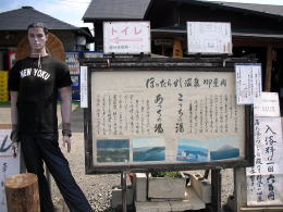 さらにその先、案内板の傍らに「NEW YOKU」のTシャツを着たマネキン人形・・・