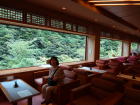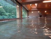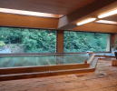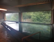 | 畳敷きの脱衣所に驚き、さらに古代桧造りの巨大な湯舟に目を奪われ、まるで東山魁夷の絵のようなガラス越しの緑に感動し・・・素晴らしいとしか言いようのない浴場です。視覚的な効果なのか、湯が一層まろやかに感じます。この広さで源泉かけ流し、西山温泉慶雲館、恐るべしです。 |