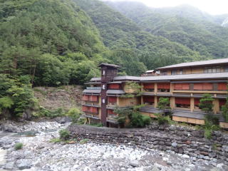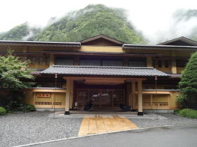 到着した慶雲館は山の中とは思えない堂々たる宿構えです。 |