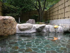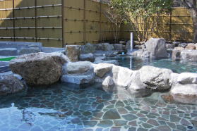 | 内湯、露天風呂ともに源泉浴槽と加熱浴槽が2つずつ、計4つの湯舟が男女別にあります。 |