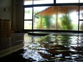 | 広々とした浴場に38℃の源泉浴槽と加温浴槽があります。いずれもかけ流し。 |
