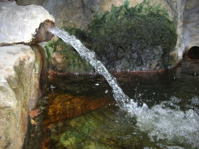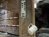 | 内湯と同じように湯口にはコップが用意されています。飲んでみると「まろやかな温い炭酸水」。意外に飲みやすい。胃腸病、便秘、痛風、肝臓病、糖尿病などに効果があるそうです。 |