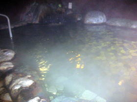 | 休日はかなり混み合うようですが、今回訪れたのは平日の昼前。限りなく貸切り状態で、あまりの心地よさに、気が付くと1時間も入っていました。聞きしに勝る名湯でした。たぶんこの先何度も訪れることになるでしょう。 |