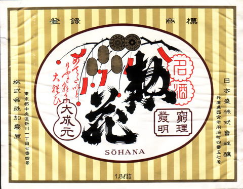 宮内庁御用達の酒。「惣花」とは江戸時代、花柳界で新春