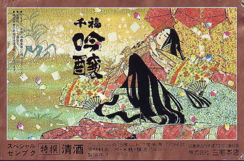 初代三宅清兵衛が内助の功を称える意味で、母・フク、妻・千登の字をとり 酒名を「千福」とした。ラベルは厳島神社所蔵の国宝「平家納経見返し絵」。