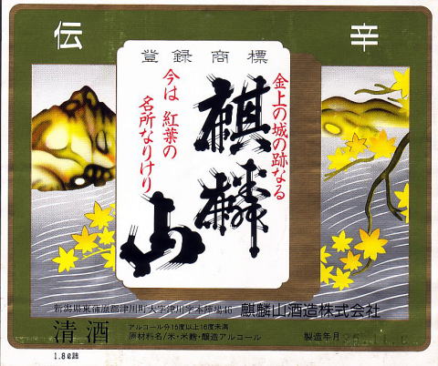 蔵のある津川町にそびえる名峰・麒麟山に因んだ酒名。ラベル