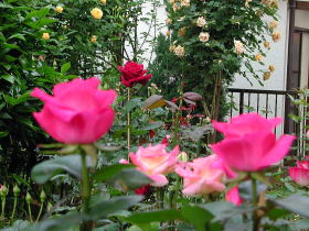 蕾がふくらんで色づき始めたら、花が終わるまで肥料はストップします。肥料を与えると花形が乱れてしまいます。この時期、バラは水をほしがりますから、たっぷり与えましょう。 | |