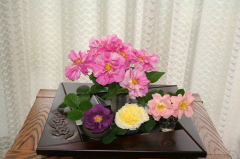 ロサ・ムンディ、ザ・ピルグリム、レンチェル・ボウズ・ライアン、ミッドナイト・ブルー・・・軽井沢彫の盆に