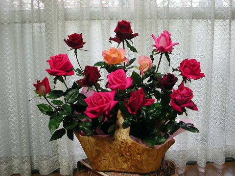 2004年秋バラのファイナルアレンジメント〜橡の木の花器に〜