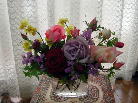 わずかに残っていたバラで作りました: イングリットバーグマン、マダムヴィオレ、ジェミニ、