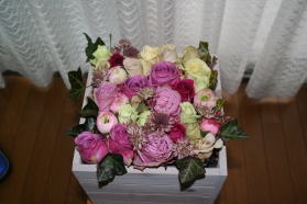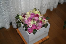 | 全部の花を余すことなく入れて 出来上がり!!美しいですね〜。 |