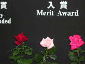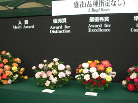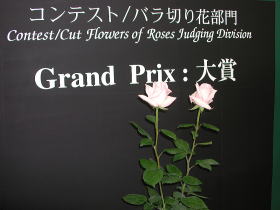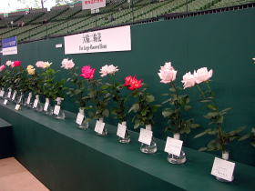 さあ、結果発表。受賞したバラが表彰台に