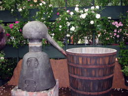 ローズオイルの蒸留釜が展示して