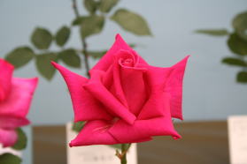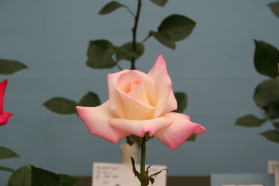 大輪一輪花部門に出品した我が家の「マリンブルー」(夫出品)。出品準備室での前評判は