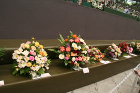 | 今回は一日だけの参加で、午前中はアレンジメントの生け込み、午後は日本バラ会の苗販売係だったので、会場を見て回る時間がありませんでした。閉場間際に撮った数枚の写真でご容赦ください。 |