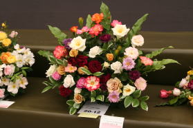 12:00出品締め切り。自由花アレンジメントには36点の作品が並びました。