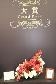 この日のグランプリは「自由花アレンジメント部門」からこの作品が選ばれました。 |