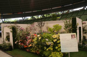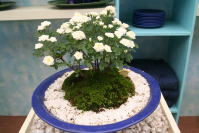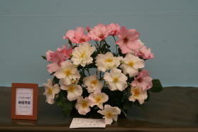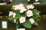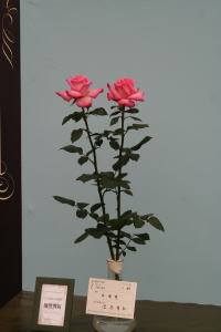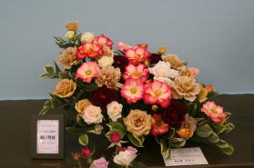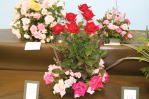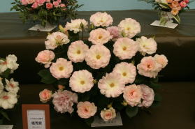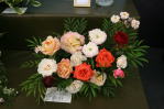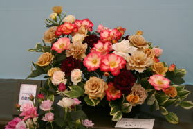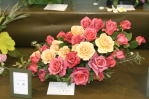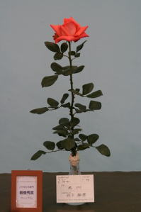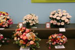 | 昨年も開花が遅れましたが今年はさらに遅く、おそらく我が家でバラを育て始めてから一番遅い開花だったような気がします。この春は本当に開花が遅れました。結果、大輪系は一輪も咲かず、14日の房咲き系盛花部門と15日の自由花アレンジメント部門それぞれ1点ずつだけの出品となりました。 |