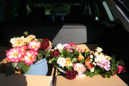 | 4時起きしてバラを切り、6時に出発。途中渋滞もなく順調に西武ドーム到着。生け込み開始です。 |