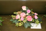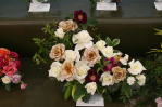 | マチルダと、花数が足りないのでラ・マリエを3輪添えて盛花を生けてみました。 |