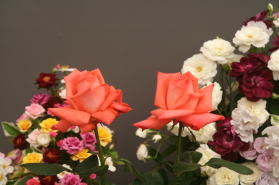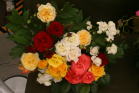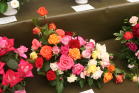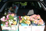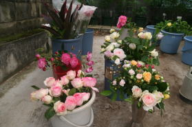 | 昨日の時点では開いていなかったバラたちもどうにか開花。右はガレージで水切りを終えたところです。途中渋滞もなく西武ドーム到着して生け込み開始しました。 |