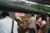 | 4時起きしてバラを切り、6時に家を出発。下は西武ドームに到着してこれから場内に運び込むところです。 |