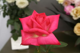 | 毎年同じことを書いていますが、この冬の寒さでただでさえ開花が遅い我が家のバラたちはさらに開花が遅れました。今回は土日が2回あるという願ってもない会期だったのですが、結局出品できたのは最後の2日のアレンジ部門のみ。大輪一輪花部門はまたしても出せませんでした。 |