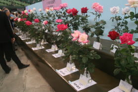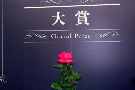 | 「4番ですね」とうちのバラの番号が確認され、グランプリ選考会場へ。この瞬間、この部門での最優秀賞確定です! びっくり!! |