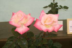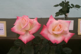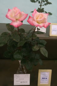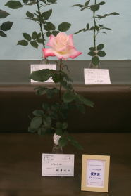 | 今回は5月11日からの開催で、開花の遅い我が家のバラとしては正直、出品を諦めていました。ところが桜の開花が異常に早かったように、厳冬のあとのぽかぽか陽気で、その後の寒の戻りはあったもののうちのバラたちも例年より1週間ほど早く開花し、コンテストにも出品できた次第。久々に大輪部門にも挑戦できました。 |