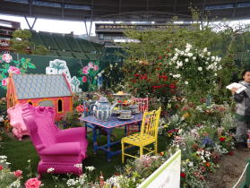 | 国際バラとガーデニングショウ第1回目から欠かさずショウガーデンを制作してきたケイ山田さん。今回のテーマは「不思議の国のアリス」です。 |