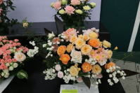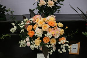 | 今日は、大輪一輪花、大輪二輪花、房咲き二枝、自由花アレンジメントの4部門のカテゴリーがあり、予選ではそれぞれ6作品が選ばれます。自由花アレンジメントではやなぎ妻の2点が予選通過。房咲き二枝ではやなぎ夫の花が通過しました。でも、4部門の最優秀賞で競う大賞(グランプリ)に選ばれなかった部門からは最終的に1点が落選となります。 |