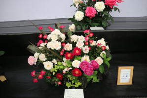 さすがに、大輪系の出品は少なかったのですが(我が家はゼロ)、総力戦で臨んだアレンジメント部門では、栽培本数に余裕のある方々の力作がずらりと並びました。 |