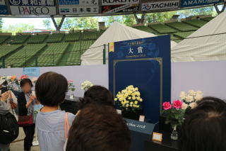 | この日の切り花部門グランプリは、大輪二輪花のパローレ。茨城県の方の花でした。 |