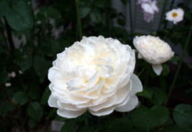 イングリッシュローズは、日本の気候ではつるバラのようになるものが多いのですが、グラミス・キャッスルは矮性でコンパクトにまとまり、鉢植えでも育てやすい品種です。