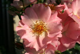 柔らかなピンク色の花で、中心に近づくにつれて白っぽくなる優しい雰囲気のバラ。みちのく岩手の名バラ園、花巻ばら園の花です。