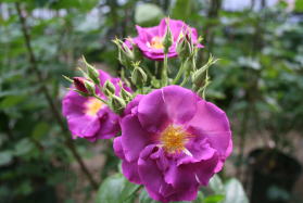 シュラブに属し、地植えにすると半つる性に育つようですが、我が家では鉢植えでコンパクトに育てています。