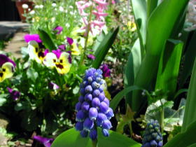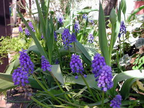 ムスカリは球根ですが こぼれ種でよく増えます。 細長い葉が晩秋から伸び出し、 だらだらと徒長するので できる限り遅植えした方が すっきりします |