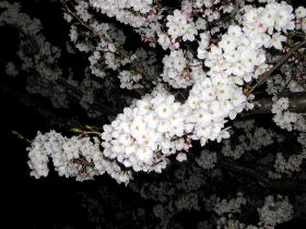 | 今年の桜は例年より色も鮮やかだそうで、夜桜も見事 | |