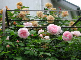 | アーチにからませた バタースコッチ(奥)とマサコ |