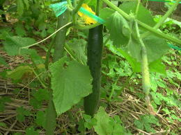 畑コーナーでは 初生りのキュウリが食べ頃です |