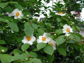 | ナツツバキが涼しげ 一日花なので夜にはポトンと落ちます |