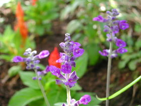 玄関脇の小庭も 夏バージョンに模様替え 今年はブルーサルビアと・・ |