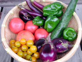 長野の丸ナス、仙台の長ナス、トマト、
