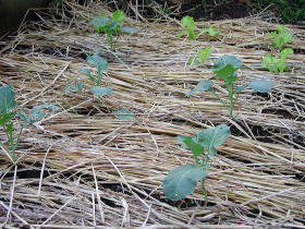 畑コーナーでは ブロッコリーとレタスの苗がすくすくと |
