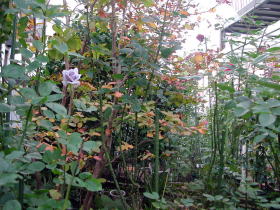 | 今年の秋は雨ばかりでしたが ここにきてようやく晴れが続き、 バラも傘を外すことができました。 |