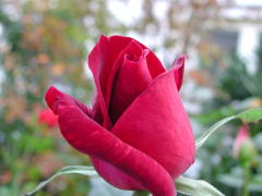 | パパメイアン 見ごろは明日か明後日あたり。 黒バラの代表花で 実際は写真よりずっと黒っぽい。 香りの名花でもあり、 蕾でも強く香ります。 |
