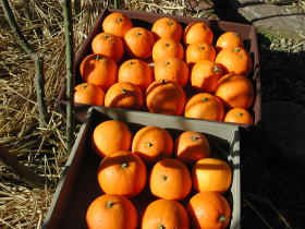 ネーブルを収穫しました。 全部で31個。 8年目の木ですが 過去最高の出来です。 |