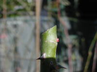 超遅咲きのインペラトリスファーラーを例年よ り2週間早く剪定しました。春の開花は剪定 時期に左右されないとのことですが、少しは 開花が早くなるかどうか、ちょっと実験です。 ただし、あまり早く剪定すると伸び出した芽が 寒さでやられるのでよくないとされています。 |