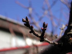 アンズには早くも花芽がついています。 開花は3月中旬です。 |